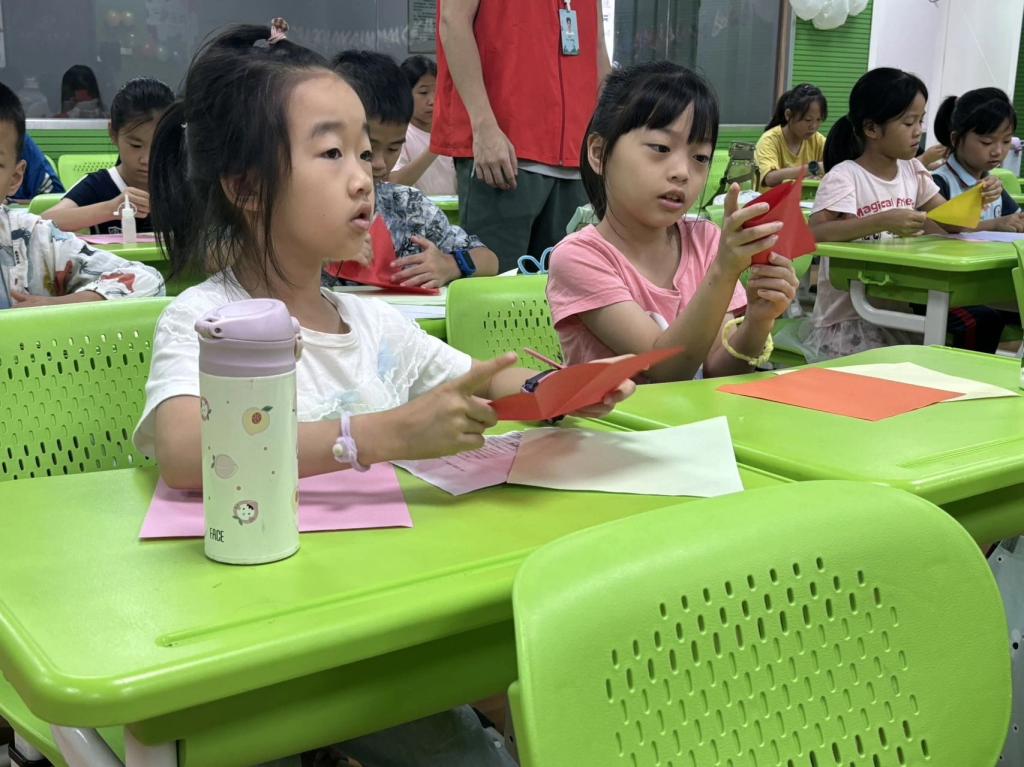 折纸童真趣,无言赤子心。折纸作为一项传统的手工技艺,极富乐趣。在邝芷晴老师的带领下,孩子们手脑并用,认真思考和想象,一翻一折。在这一过程中,不仅提高了孩子的动手能力和空间几何思维,还培养了孩子们的注意力和专注力。