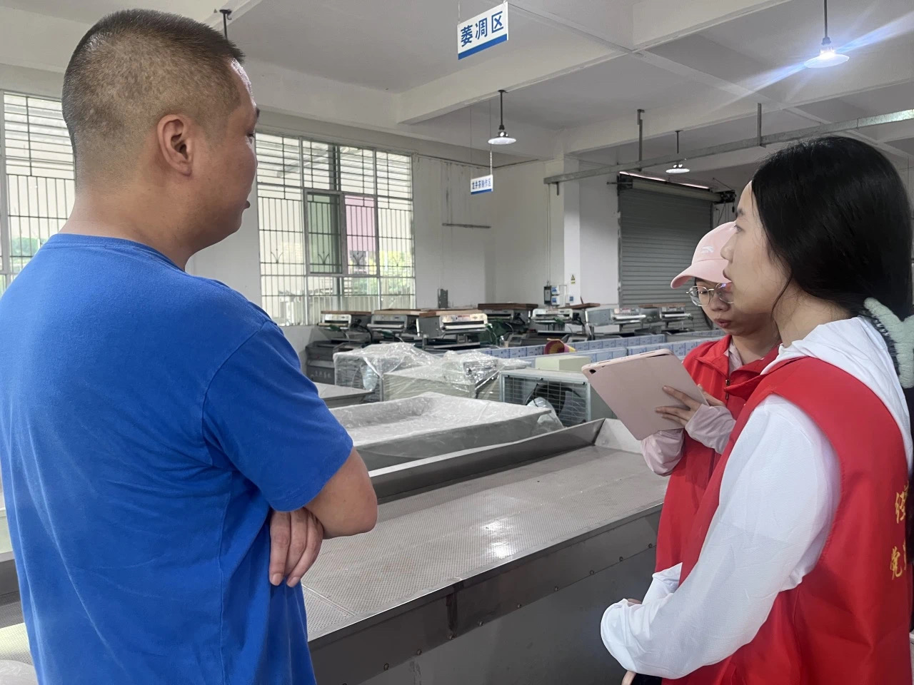 在叶总的带领下,我们进入了公司加工茶叶的工作车间,进行了一场深入而富有成效的参观学习活动。通过叶总的讲解以及厂内制茶宣传标示,我们知道了不同种类的茶有不同的加工工艺,不同的步骤有对应的机器来进行加工。叶总不仅慷慨地分享了车间高效运转的生产管理模式,还详尽阐述了茶场严格执行的生产标准,以及机械化制茶工艺所蕴含的精妙流程与技术创新,让每位队员都受益匪浅。