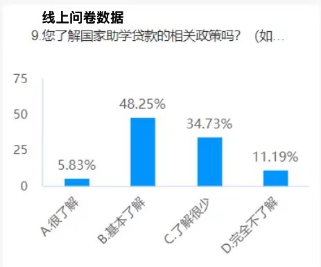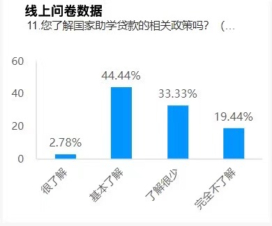 (通讯员:黎晓君、陈晓明)本次问卷调查旨在了解群众对国家助学贷款政策的认知程度、态度和看法,以及对其实施效果的评价。问卷设计了家长版和员工版,从两类不同的群体进行调查,线上线下同时进行。问卷内容设计了包括政策了解程度、申请难易度、贷款违约处理、法律法规约束等多个方面的问题,以全面了解受访者对国家助学贷款政策的认知和看法。希望通过本次调查,可以为完善国家助学贷款政策提供一定的参考和建议。