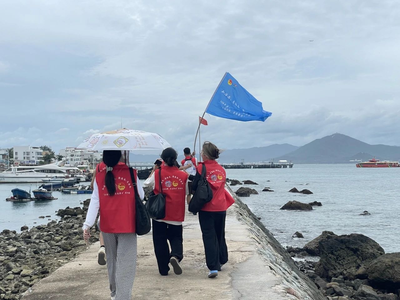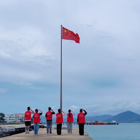 三亚西岛,这座拥有400多年历史的古村落,以其独特的自然风光、浓郁的渔村风情和深厚的文化底蕴,深深地吸引了我们的目光。西岛居民祖辈以捕鱼为主,敬畏海洋,拥有极具特色的渔民文化。西岛团委干部带领实践队员来到西岛升旗之地,在西岛码头的长堤上,五星红旗迎风飘扬,成为这片蔚蓝海域边最耀眼的存在。