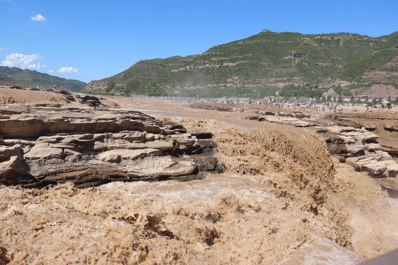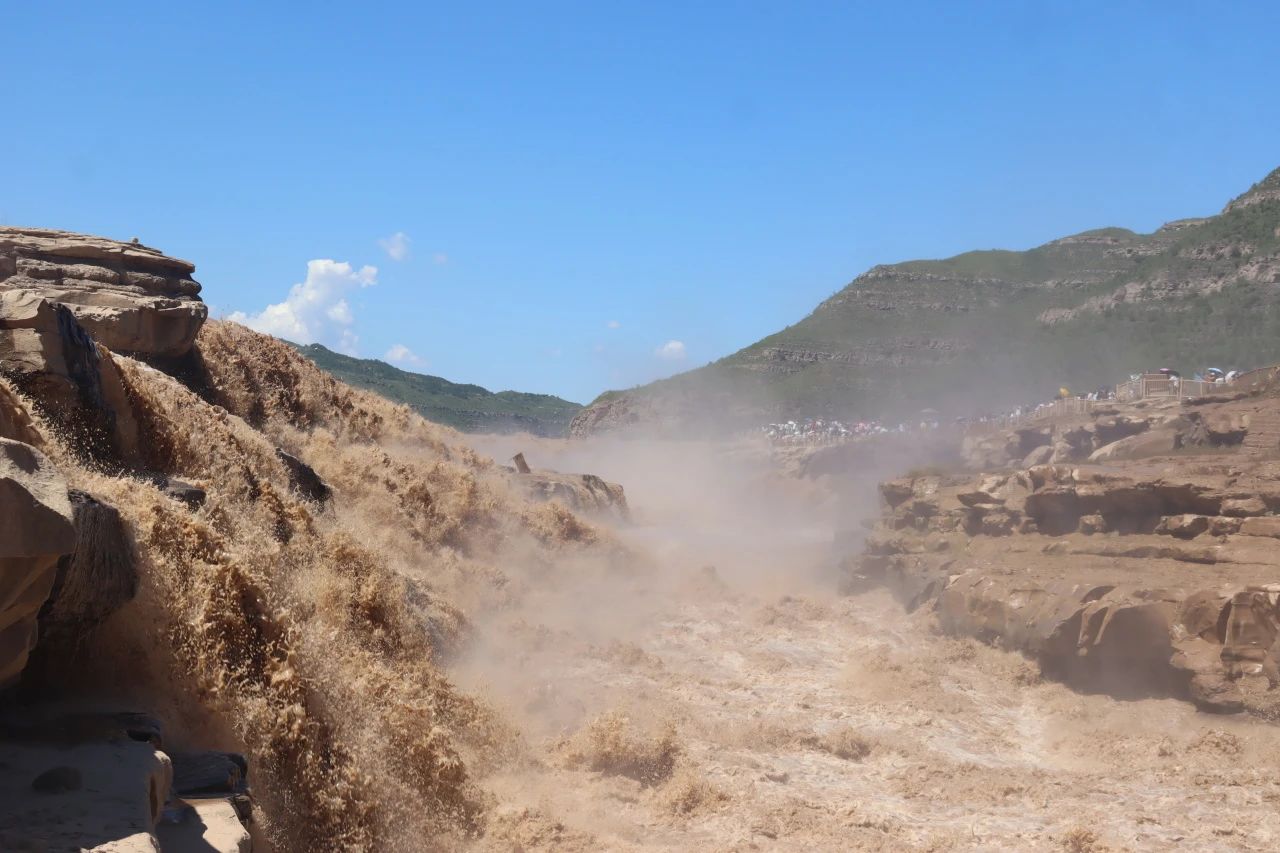 8月13日午后,实践队满怀期待地前往陕西黄河壶口瀑布。刚一抵达,还未来得及近观,那震耳欲聋的轰鸣便如千军万马奔腾而来,伴随着漫天水雾,瞬间将队员们包围在它的磅礴气势中。壶口瀑布以其无可匹敌的雄浑之势,瞬间征服了实践队每一个人的心。