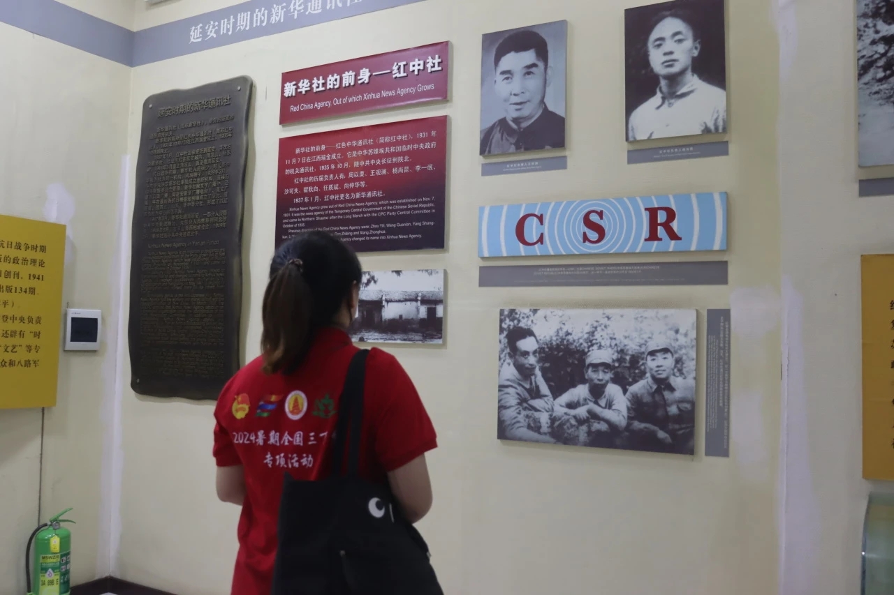 清凉山南麓坐落着延安新闻纪念馆,是全国唯一的新闻事业专题纪念馆。收藏展览文物,弘扬革命传统。实践队走进纪念馆,一幅幅珍贵的照片、一篇篇激昂的文字,仿佛穿越时空,带着实践队员们去到了那个波澜壮阔的年代。在这里不仅重温了中国革命的光辉历程,还深刻感受到了新闻工作者在历史洪流中的重要角色。