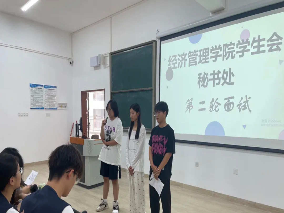 金秋九月,青春洋溢。员工会面试现场,各部门副部以客观公正的原则对面试者进行考核。面试者精神饱满,自信大方。游刃有余地面对副部的考量。