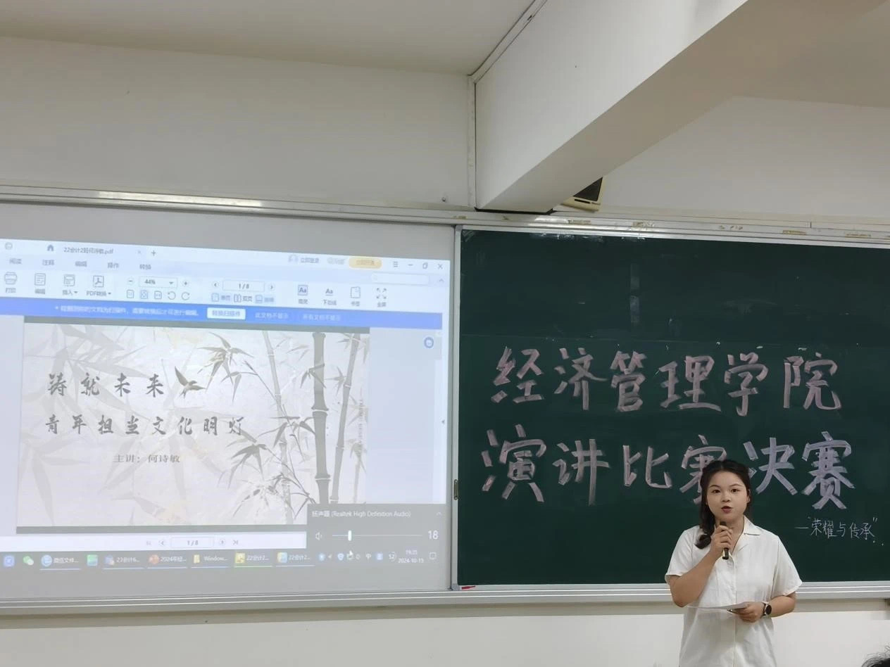 最后公布此次演讲比赛的获奖名单:一等奖23会计5班林文峰、二等奖23会计6班张丽、三等奖22会计1班黄诗意、优秀奖22会计2班何诗敏、23财管3班张尔阳、22互金2班梁昊瑜。