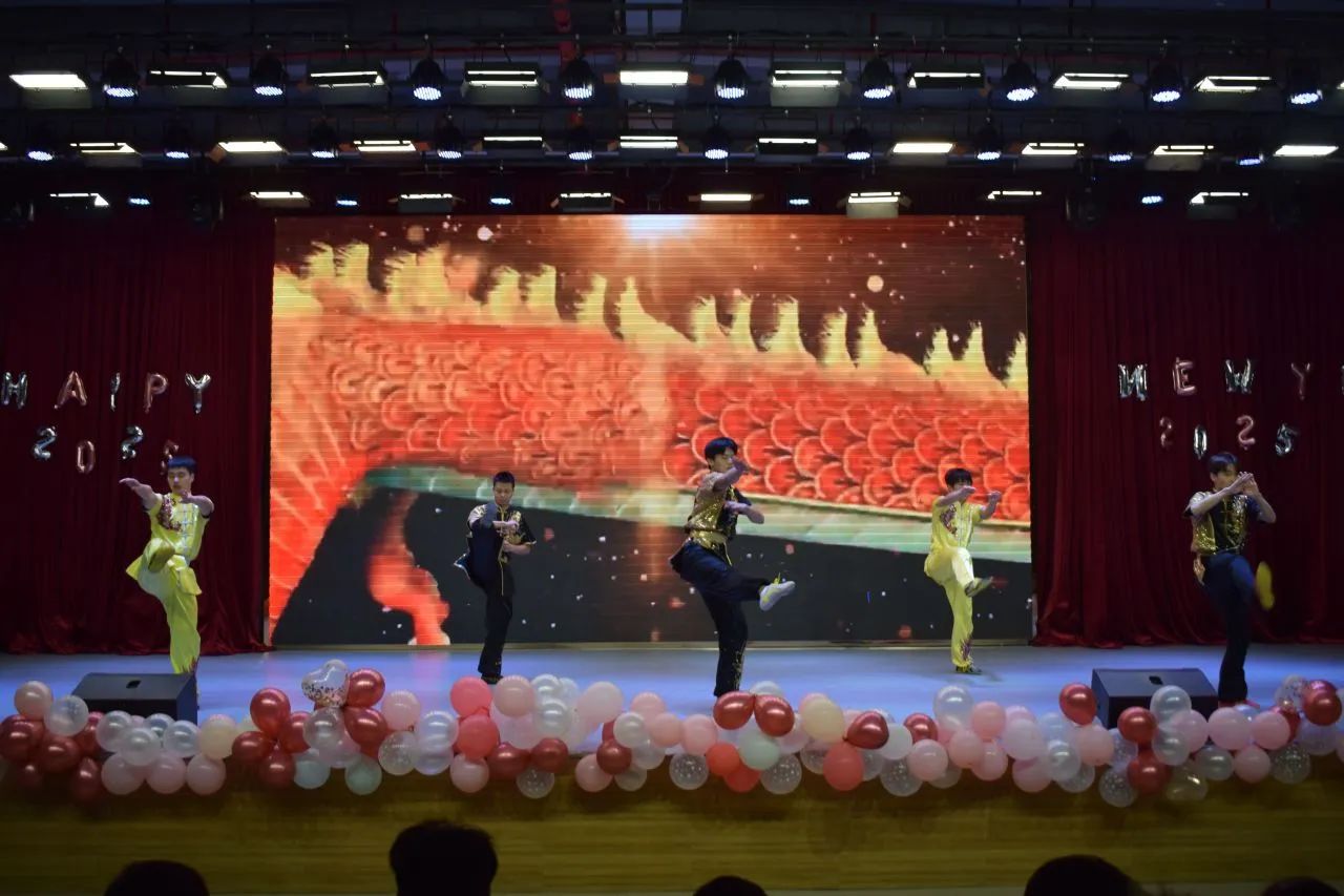 演出节目精彩纷呈,主要节目有:广州体育公司的广体龙狮队表演舞狮《醒狮呈祥》、广州体育公司武术公司员工演绎武术《武韵华章》、校艺术团光音队演绎歌曲《岁月》、炫舞流协会以舞蹈《Born to be》等。表演期间还有趣味派汤圆、趣味派红包环节,观众一起吃汤圆、一起派发红包,拉近了晚会与观众之间的距离,烘托了现场热烈欢快的气氛。