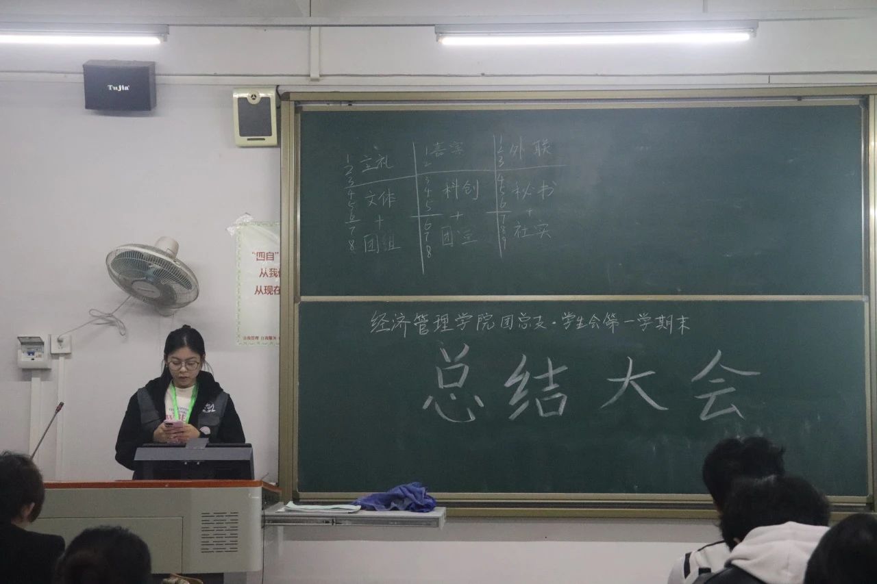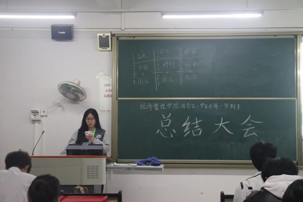第五环节,团总支·员工会的三位执行主席对本学期的团学工作进行了总结。主席团总结了团学在本学期里遇到的挑战和困难,并且对部门一些活动的策划及其成果表示肯定和对在公司组织的各项活动中积极工作、辛苦付出的团学成员表示由衷地感谢。最后,他们希望每位成员在未来中都能够展现出更大的勇气和创造力,不畏惧挑战,勇于承担责任,以开放的心态拥抱新思想,以实际行动推动创新,共同为团学工作注入新的活力和动力。