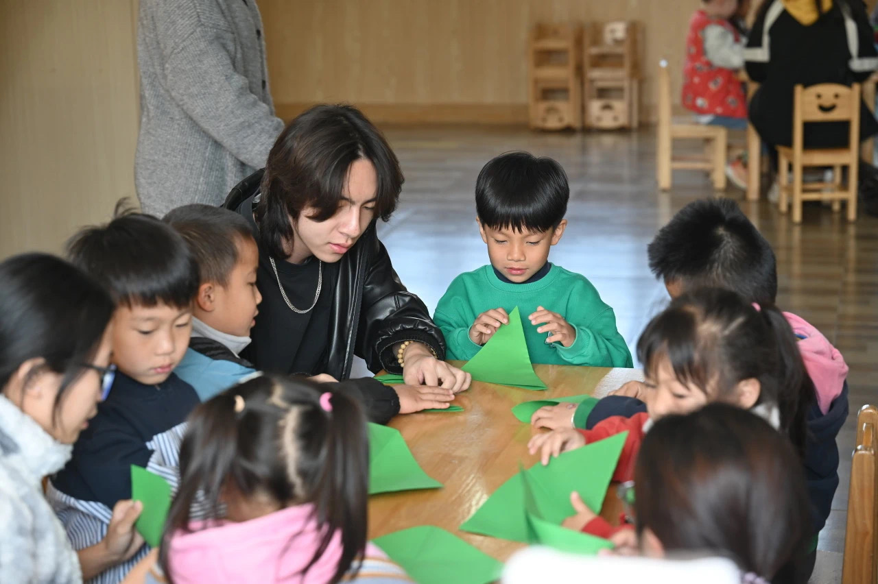 (通讯员:戴红韶、陈晓明)2025年3月19日上午,bevictor伟德官网与音乐舞蹈公司赴白云区常春藤实验幼儿园,携手开展了一场充满温情与欢乐的雷锋月志愿活动。在活动现场,志愿者们带领小朋友开启有趣的折纸环节。孩子们在志愿者们的指导下,用绿色和红色的彩纸精心折成雷锋帽,还使用打孔机制作星星装饰,将其粘贴在帽檐周围。他们专注的眼神配合着灵巧的小手,展现出对雷锋精神的初步理解。最后,在音乐舞蹈公司志愿者们的专业指导下,孩子们学唱起经典红歌《学习雷锋好榜样》。纯净童声如破土新芽,通过音符传递着对楷模的敬意。随着旋律流淌,雷锋精神化作春雨浸润童心,友爱互助的种子在稚嫩心田间悄然萌发。