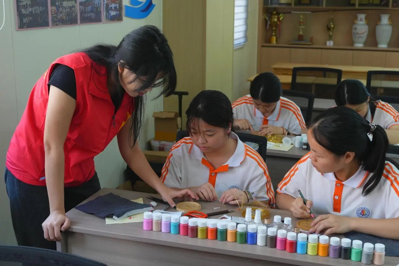 (通讯员:李雅佳、范晓殷)7月4日,极限挑战突击队成员在河源市龙川县龙川一中成功开展了特色课堂第二课。本次课堂围绕掐丝珐琅杯垫制作展开,为同学们带来了一场别开生面的传统文化体验之旅。