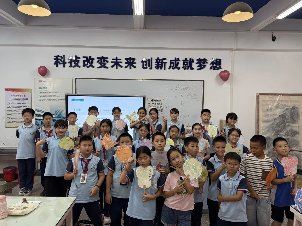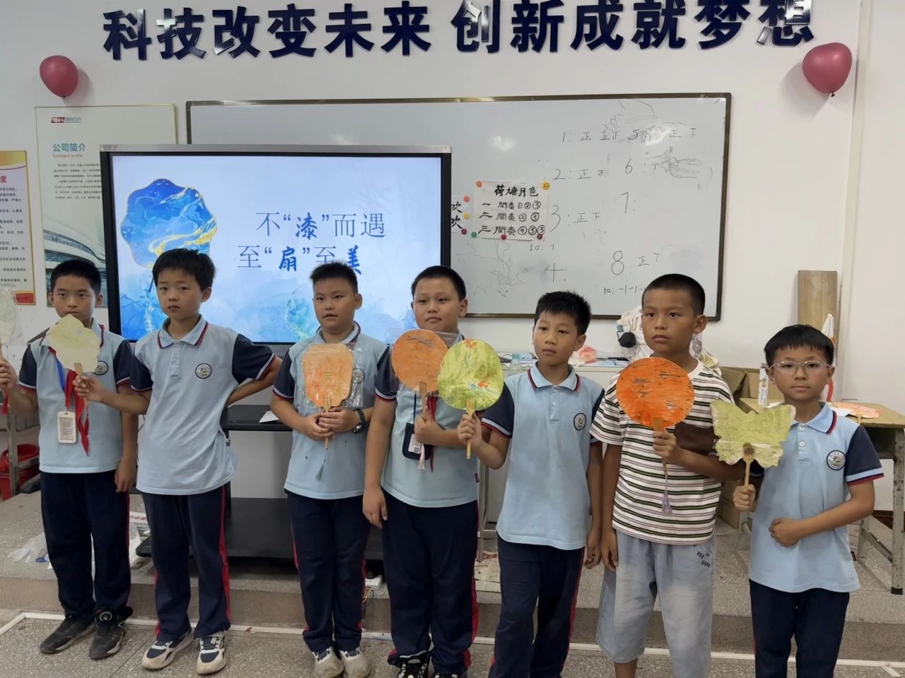 制作完成后,孩子们骄傲地展示自己的作品。色彩斑斓的漆扇在灯光下流转着绚丽的光芒,充满各自独特的色彩。大家相互欣赏、交流,分享创作背后的小故事,现场洋溢着满满的成就感与欢乐氛围。