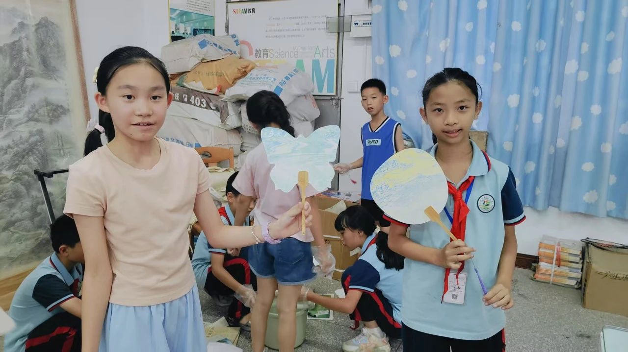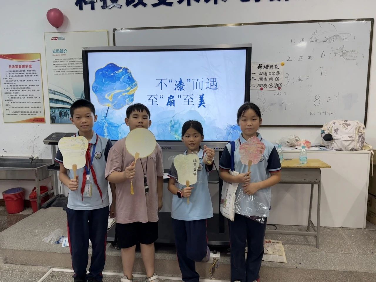 在漆扇晾干后,有人在上面题字赋予寓意,有人描绘所见风景,还有人将心中的梦想化作灵动的线条。调色、上色、勾勒细节……尽管动作略显生疏,但专注的模样令人动容。在欢声笑语中,原本素白的扇面渐渐焕发生机,每一把漆扇都承载着孩子们独一无二的创意与热情。