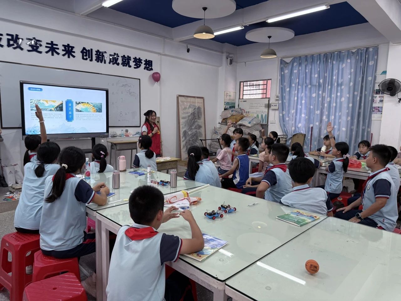 支教课堂上,突击队员们化身文化讲解员,用生动的语言为孩子们打开漆扇世界的大门。从漆扇起源于古代文人雅士手中的风雅之物,到它历经岁月沉淀成为文化瑰宝,每一个历史片段都如画卷般徐徐展开。孩子们围坐一圈,好奇的眼神中闪烁着对传统文化的向往,在问答互动间,漆扇的前世今生悄然印刻在他们心中。