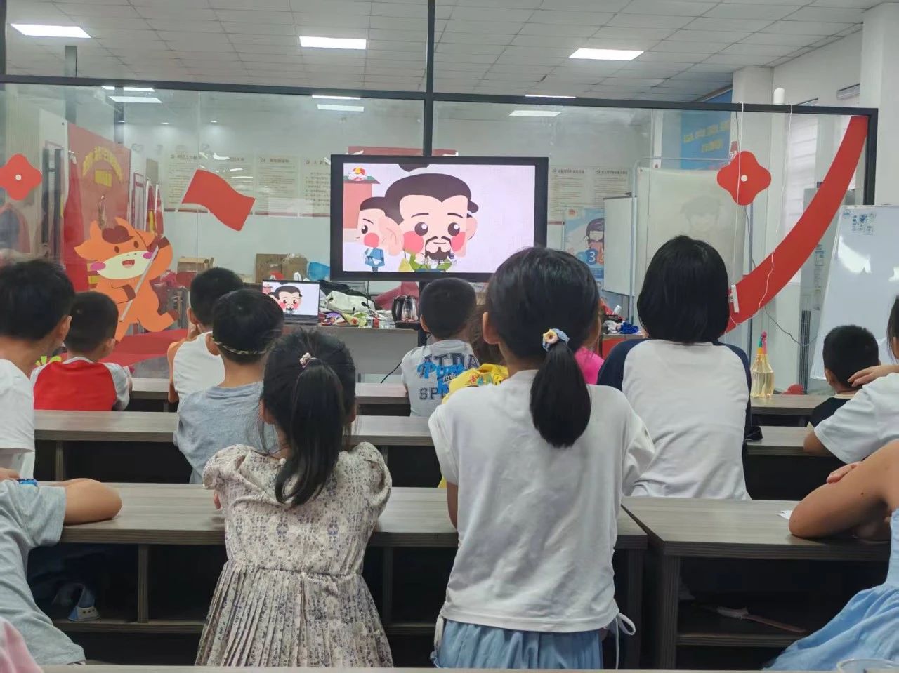 为了让孩子们更直观地了解三国历史,志愿者随即播放了一段精心挑选的三国历史卡通短剧。短剧中生动的动画形象、紧凑的剧情,将“草船借箭”“空城计”等典故娓娓道来。视频结束后,志愿者们围绕剧情提问,孩子们积极回忆细节,在问答中加深了对三国人物和事件的认识。