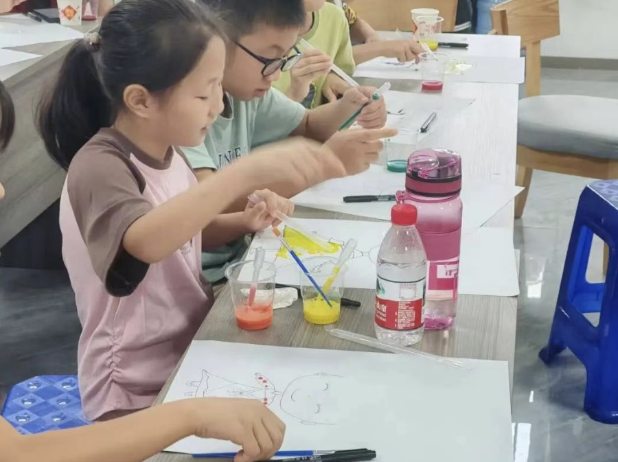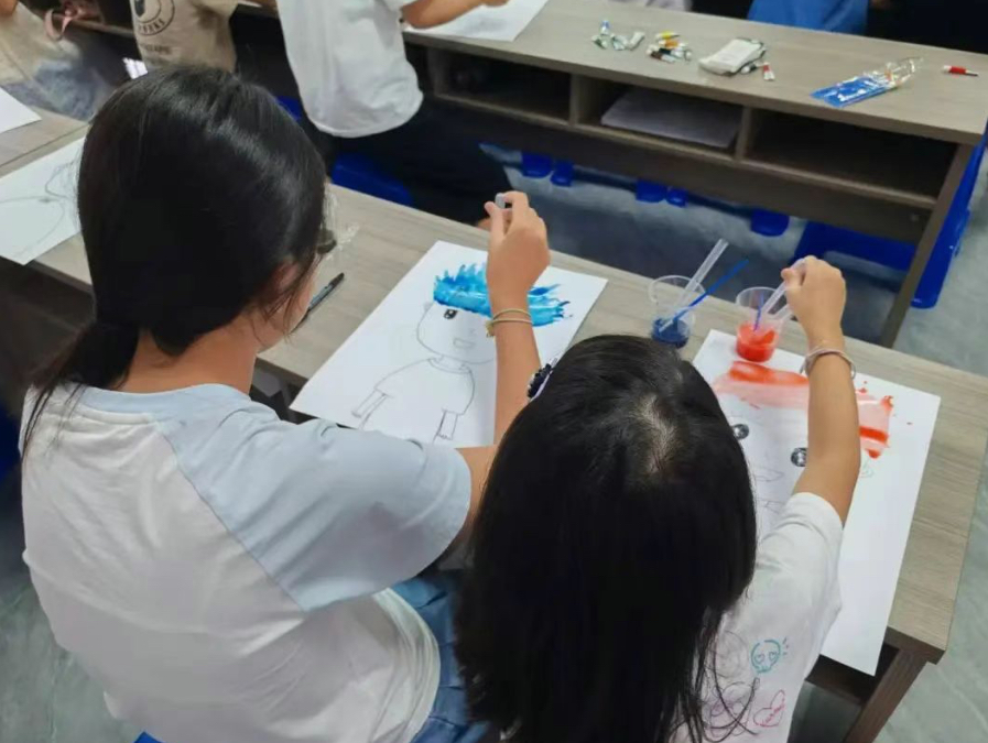 这堂特别的油彩课,没有复杂的技巧,只有对“自由”的想象。稀释的颜料是流动的灵感,吸管是撬动创意的魔法棒,而每个孩子呼出的气息,都为笔下的人物注入了独一无二的灵魂。