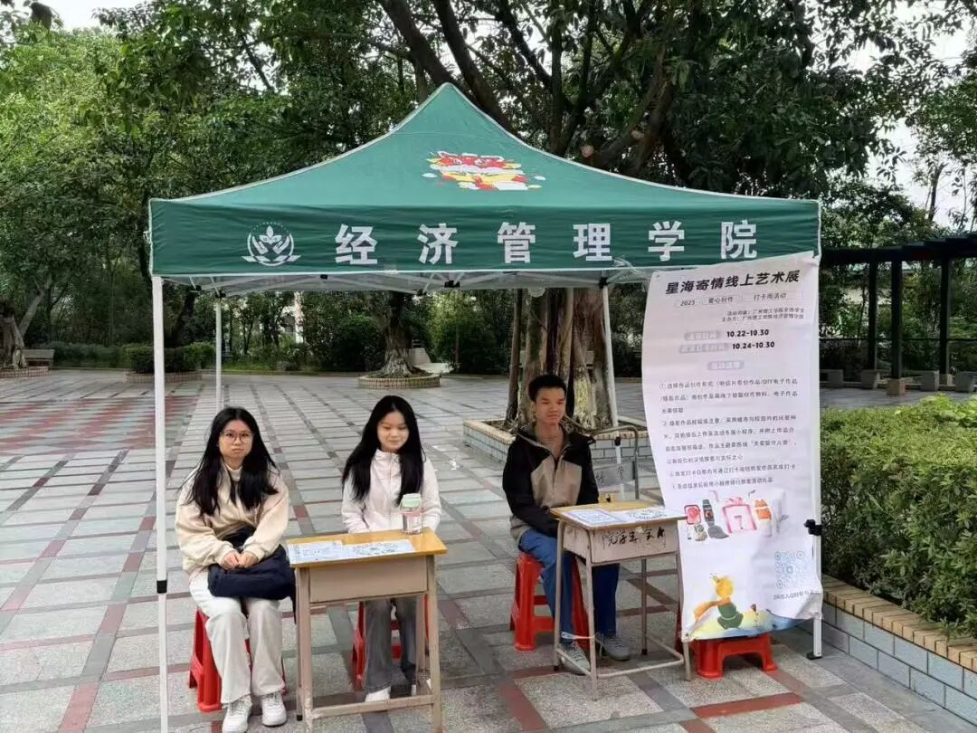 该活动同时设立线下摆摊,现场聚焦宣传发力:我们陈列乡村孩子的生活剪影、活动公益愿景海报,志愿者们耐心向前来咨询的同学讲解活动意义,邀请大家参与线上打卡;摊位上设置“祝福留名墙”,路过的同学写下对乡村孩子的期许,还可领取活动纪念明信片,在面对面的互动中传递公益理念,让“榜样100”的精神被更多人知晓。