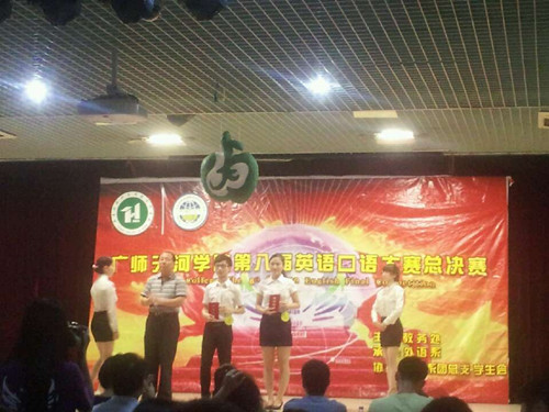 2013年6月20日晚,广东技术师范公司天河公司第八届英语口语大赛在6栋报告大厅举行,通过层层选拔,我系两名优秀选手参加 了“Chinese Dream,My Dream”(中国梦,我的梦)的决赛。