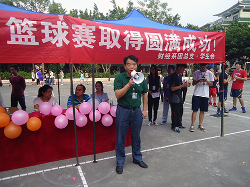 我系第十二届“新生杯”篮球赛于15日下午在灯光篮球场拉开序幕。党总书记李伟民、辅导员、以及18个员工班参赛队员共200余人参加了本次开幕式。