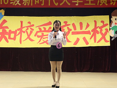 “志在山顶的人,不会贪恋山腰的风景”,16会计7班的陈丽敏选手用精妙绝伦的口才为观众演绎了“知天院、爱天院、兴天院”。