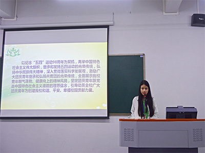 会议初始,文娱部常务副部长黎婉儿发表讲话,说明了五四大合唱的重要意义,五四大合唱是以各公司为单位参赛,主要以合唱为表演形式的校级比赛,这场比赛的目的是为了激励广大青少年继承和弘扬共青团的光荣传统,全面展示公司青年朝气蓬勃的精神风貌。她强调以后的训练的纪律问题,并希望能够保持去年的良好成绩,争取保二争一。其次,团总支书记欧舒馨也对纪律问题作出要求,希望参赛选手合理安排好个人的事务,协调好时间,既不耽搁学习,又能把活动搞好,为了集体和团队,应当全力以赴。