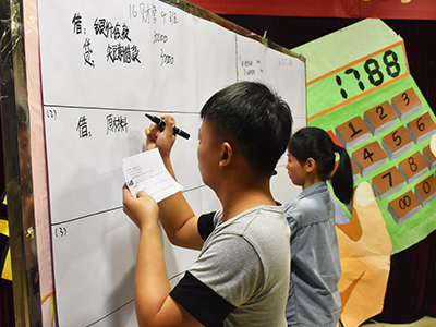 在接下来的荣耀会计环节,选手们各自在答题板上解答题目,在选手答题的十分钟里,主持人和观众来了一个很有趣的亲密互动,那就是“三场三次十里钞票”,观众们积极参与到这次互动之中,把现场的气氛推到了高潮。