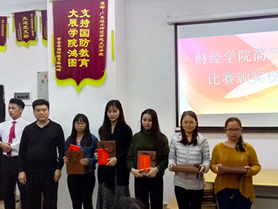 (通讯员 邓健明)12月5日下午,公司“就业创业宣传周”系列活动简历制作大赛颁奖环节在11栋会议室召开,出席活动嘉宾有我党总支书记谭飞、办公室主任段妍君、团总支书记黄秋芬、辅导员谢睿、谭智和、黄洁雅老师。