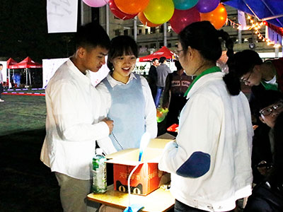 公司在游园活动上举行了多样的小游戏,并从各班级制作的手工艺品中挑选部分作品作为此次游园活动小礼品。各个小游戏摊位前都排起了长长的队伍,进入游戏之后,欢呼声与笑声此起彼伏,在“爱的melody”游戏中,同学们不断在脑海里搜索与关键词的歌曲,在“弹进我心窝”游戏中,同学们努力将乒乓球弹入杯子,获取游戏积分,在“射穿你心”的飞镖小游戏中,许多同学都秀出实力,得到了不错的成绩。
