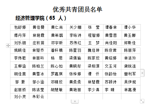 2019 年以来,我们深入学习宣传贯彻习近平新时代中国特色社会主义思想,深入贯彻习近平总书记关于青年工作的重要思想、对广东重要讲话和重要指示批示精神,坚决落实团中央、教育部、团省委的工作要求,聚焦根本性问题,大抓团基础建设,在推动深化改革、全面从严治团,强化思想引领、服务成长成才等方面开展了一系列富有成效的工作。为表彰先进,树立典型,经研究决定授予包舒婷等 65名同学“优秀共青团员”称号;授予何桂红等 17 名同学“优秀共青团干部”称号;授予“18 会计1班”等 2 个团支部“先进团支部”称号 。