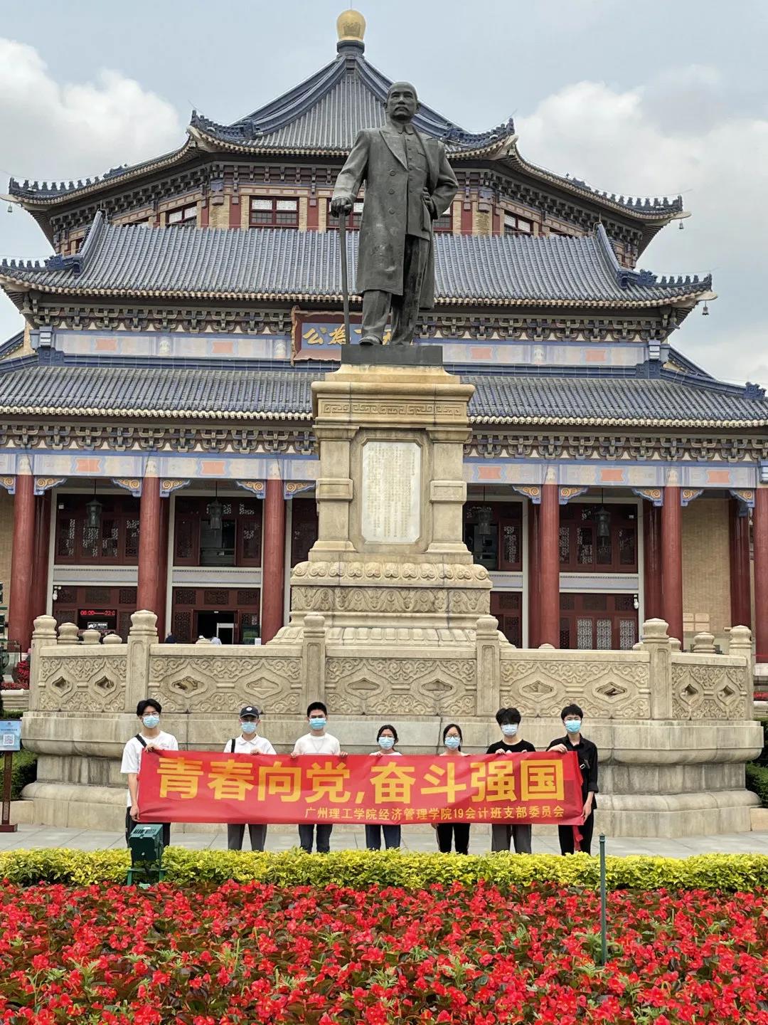 庄严宏伟而安宁静谧的中山纪念堂坐落于花坛前,孙中山先生的雕像矗立在广场中。“惟愿诸君将振兴中国之责任,置之于自身之肩上。”这是孙中山先生提醒和勉励后人的警示名言。我们应该学习孙中山先生那天下为公的博大胸怀和崇高的爱国情感,并且深刻地体会革命先辈们为革命前赴后继、不畏牺牲的奉献精神,坚定我们作为共产党员的责任与担当。在实现“两个一百年”的奋斗目标和中华民族伟大复兴中国梦的征途中作出新贡献!