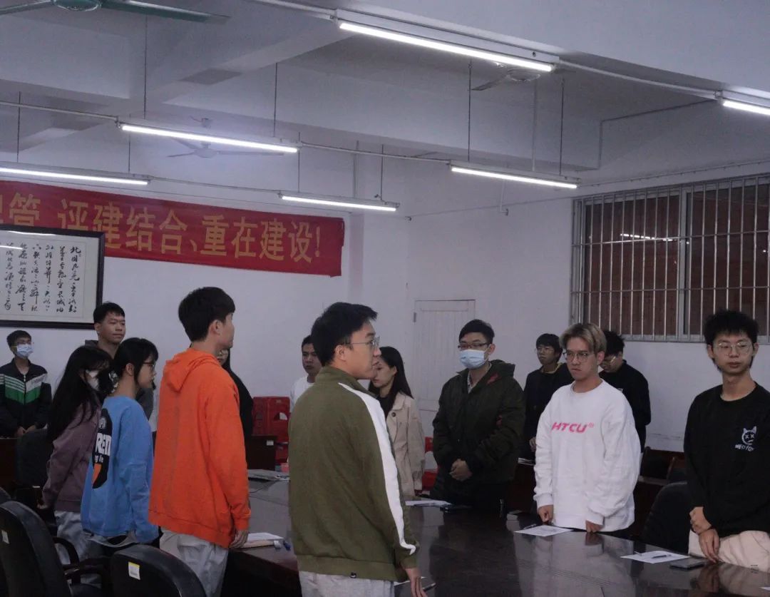 首先,主持礼仪队干事庄曼琦介绍出席本次会议的评委,他们分别是:团总支书记杨楚钰、团总支副书记兼执行主席许琪琪、员工会执行主席谭志文、员工会执行主席黄凯尉,以及各团总支拟推人选的员工干部。
