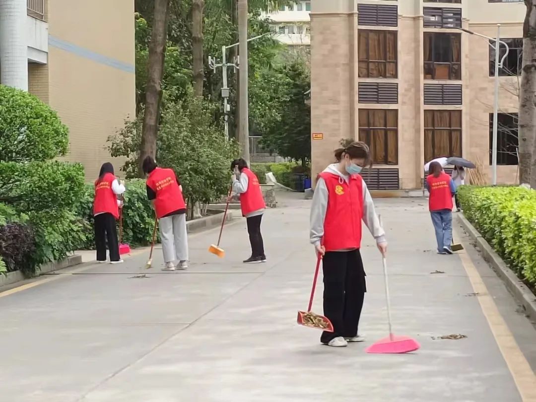 在活动现场,我们可以看到身穿红色志愿服的志愿者们在公司团总支组织部干部干事的带领下,分成了三组成员,并且按照划分的不同区域进行了校园清扫活动。志愿者们拿着扫帚、垃圾铲和垃圾桶,在校园校道内进行着大清扫。志愿者们不怕累不怕脏,齐心协力对道路上、草丛里的垃圾、枯枝和落叶进行清理,以实际行动践行雷锋精神。经过下午一个小时的清洁,校道、草丛、绿地恍然一新,使春日里的校园显得格外的清新幽雅、整洁美丽。