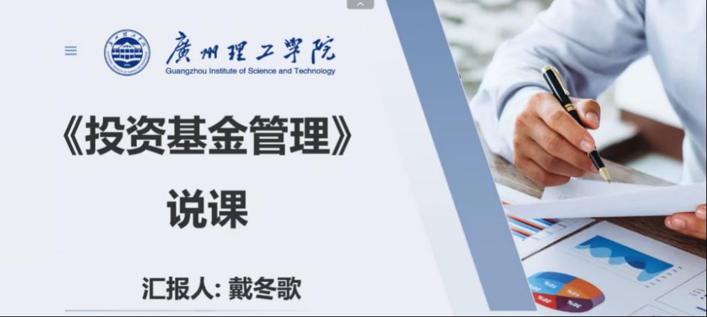 在本次说课演练中,共有五位骨干教师进行了汇报演练,其中,匡全禄老师、戴冬歌老师、李宇欣老师、刘娟老师、董化春老师分别进行了《个人理财策划》《投资基金管理》《证券投资学》《工程风险保险》《商业计划撰写与路演》的说课汇报。五位老师分别从各自的授课经历出发,从课程定位与目标、教学条件、学情分析、课程内容与设计、教学方法与手段、课程考核与评价、质量监控体系建设、课程的档案建设、课程特色创新与成效、教学反思与改进等十个维度进行了精彩的说课汇报,各位教师的汇报逻辑清晰、内容详实,充分展现了课程组在教学内容优化、教学方法创新及课程思政建设方面的积极探索。