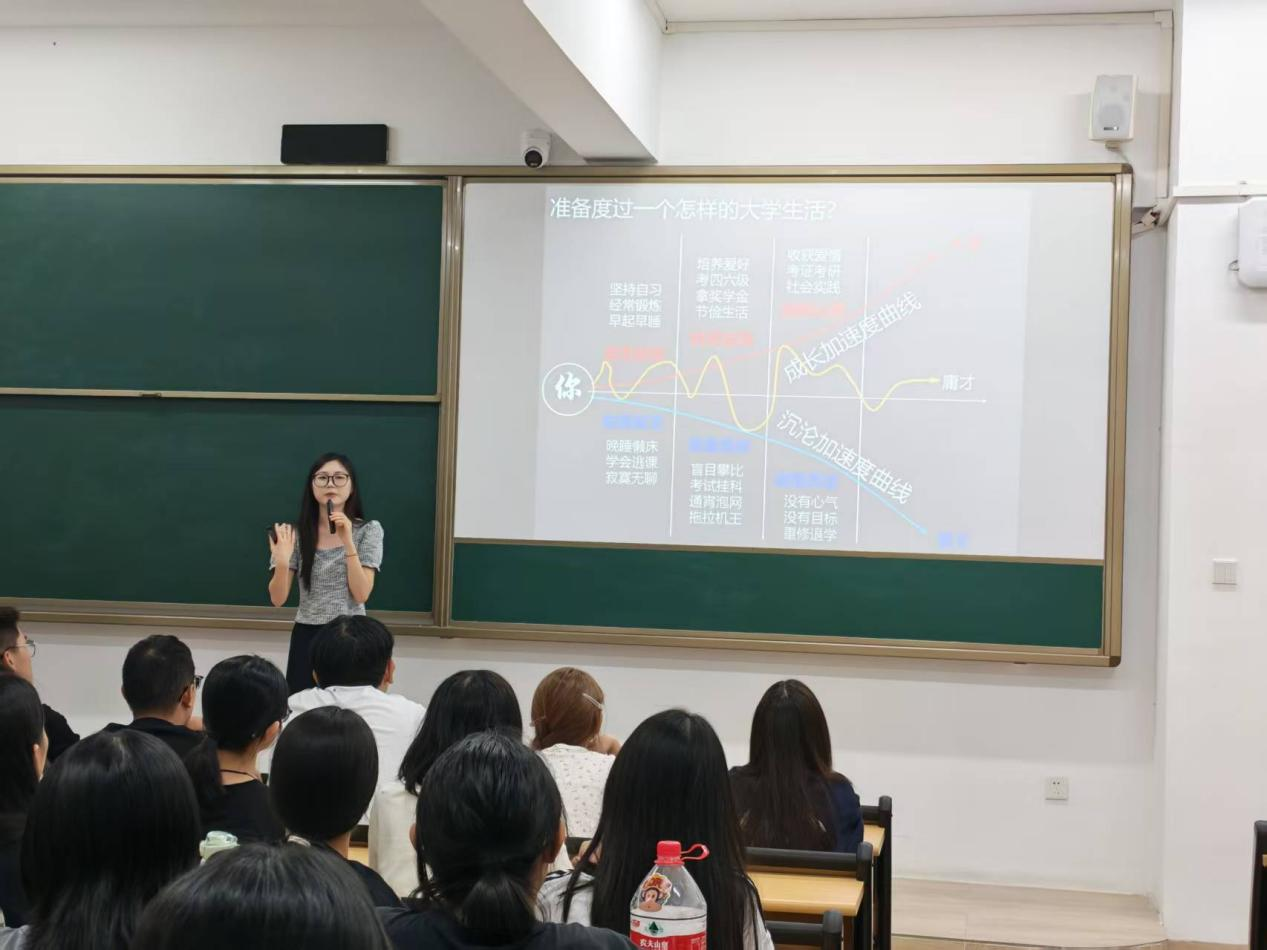 课堂上,新生们认真聆听、积极记录,不时就专业学习中的疑问与老师互动交流。老师们耐心解答新生提出的关于课程选择、技能提升、考研就业等方面的问题,现场氛围热烈而融洽。多间教室同步授课的形式,既保障了教育活动的有序开展,也确保了每位新生都能获得精准的专业指导。