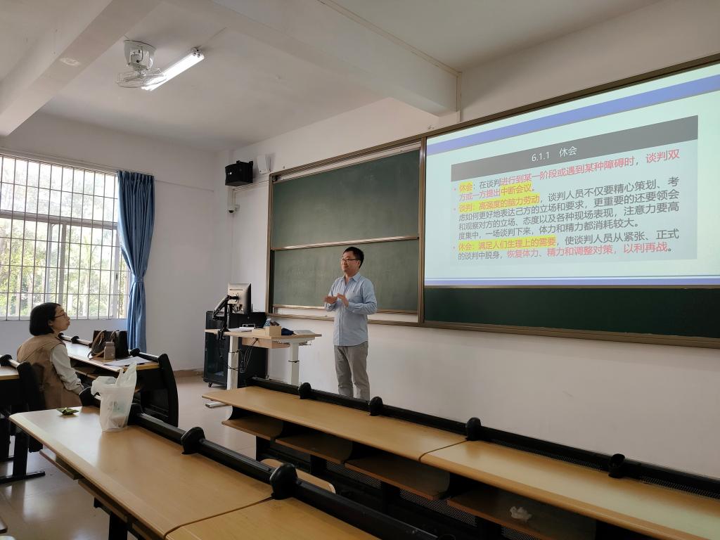 本次研讨活动,采用一老一新的搭配方式,首先由许旭老师和孙春露老师各自进行了15分钟的教学展示。许老师讲授了《统计学》中的计划完成程度相对指标的计算方法,授课内容详细,讲解细致入微。孙老师讲授了《商务谈判》中的休会策略,语言生动有趣,课中设置了较多互动环节。