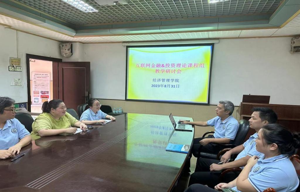 (通讯员:莫海燕)新学期伊始,为进一步落实课程性质、进度和内容,切实提高教师对所授课程的把握能力、努力上好新学期第一堂课,我系互联网金融、投资理论课程组于2023年8月31日下午在7栋222教室召开了期初教学研讨会,课程组负责人曹雪莲、莫海燕老师主持会议,倪江崴副经理、周鹤峰博士、黄鲸惠老师、刘娟老师参会。