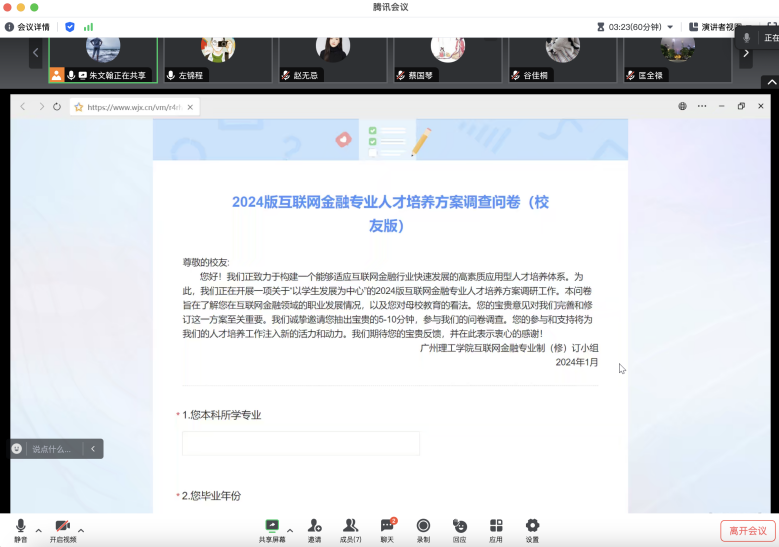本次会议主要对广州理工〔2023〕415号文件与广州理工教函〔2024〕8号文件进行学习,并依托《统计学》课程的学科优势对于前期调研的问卷进行研讨分析。组员们对涉及修订人才培养方案的两个关键文件进行了集中学习,充分认可其中的指导意见与政策方向,并普遍看好这一举措对于培养适应时代发展的全面型和创新型人才的重大意义。大家一致认为,这是一个深化改革、提升公司产品水平、培养适应时代发展的全面型和创新型人才的重要举动。