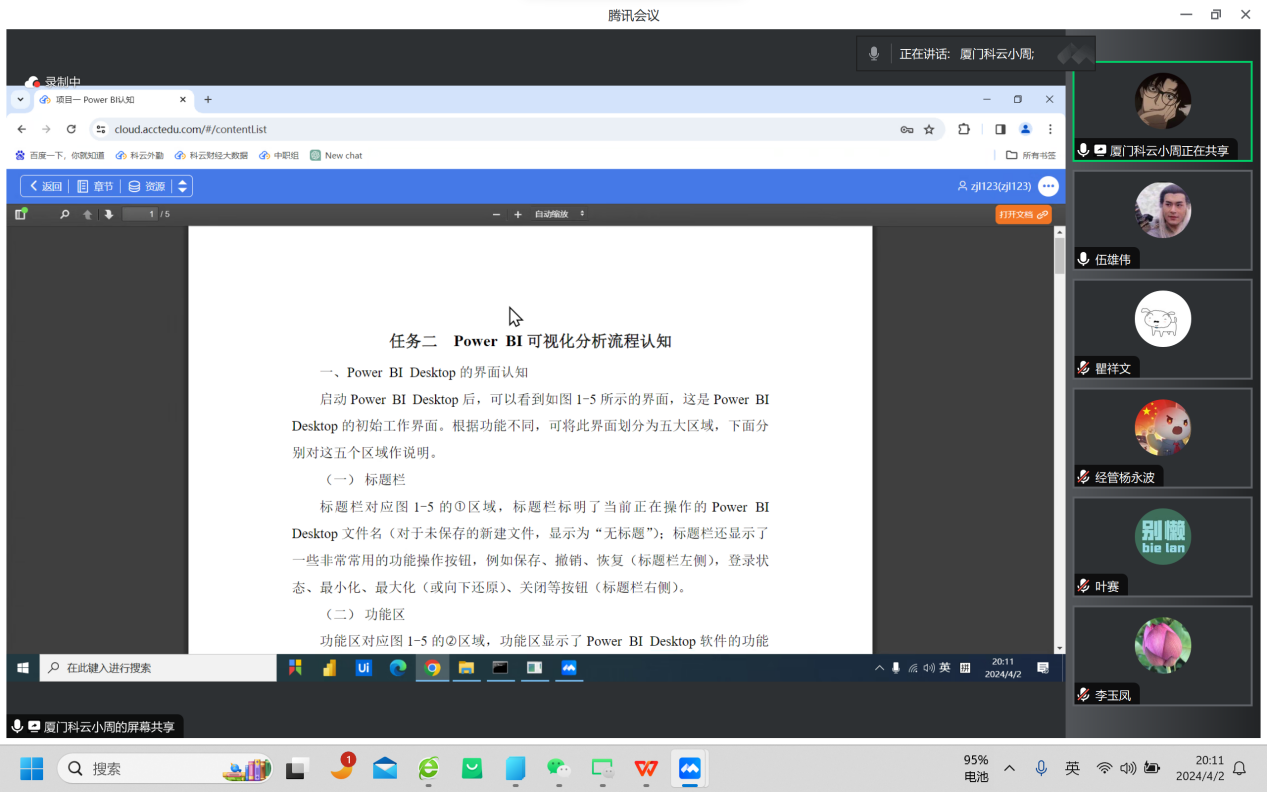 随后,厦门科云信息科技有限公司工作人员给财务管理系老师介绍了智能财务相关产品。主要针对Power BI以及业财一体化平台这两个产品进行了详细的介绍,并和财务管理系老师展开了讨论和交流。会中,瞿祥文老师针对Power BI的考试平台和科云公司工作人员进行交流,财务管理系系主任伍雄伟带领大家探讨了关于此软件在现有企业的应用情况。