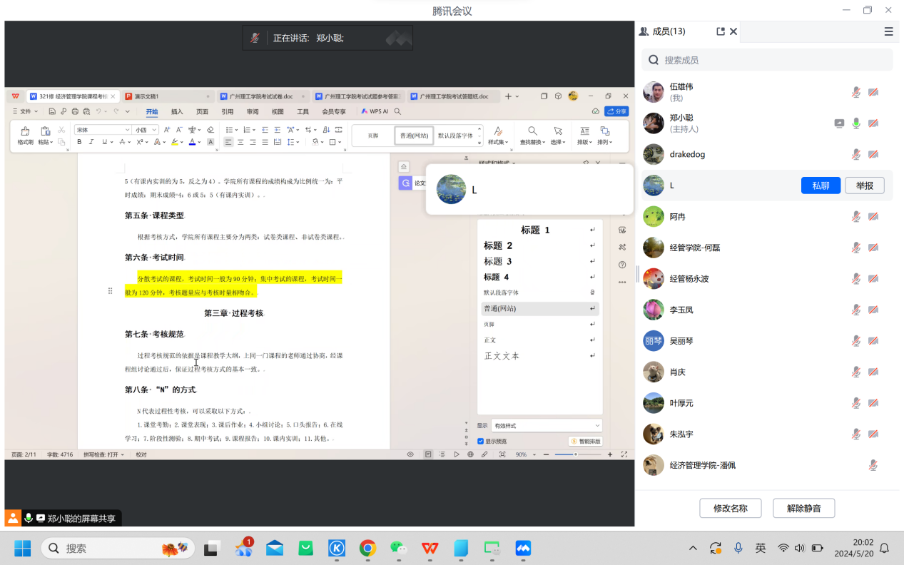 首先,由郑小聪老师带领各位老师研读细则,本学期新发布的期末制卷细则中出现了部分新的规定需要引起各位老师重视,例如试题题型不少于四种类型,多选题必须包含5个选项,试卷所有小题必须采取连续编号方式,开卷考试不得出现名词解释题、简答题、填空题等单纯考查记忆效果的题型等等。此外,本次制卷新增课程考试命题双向细目表,需要各位制卷老师按照教学大纲合理分配知识点与分值。