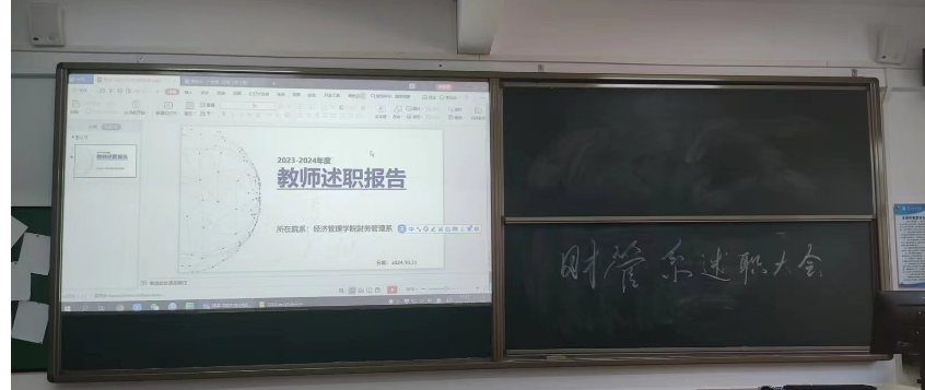 紧接着,全体财管系教师按照预先安排的顺序,依次上台述职。每位教师都精心准备了述职报告,内容丰富,涵盖教学任务、科研成果的完成状况、指导员工参与竞赛获奖情况、社会服务以及对外交流等多个维度。在述职过程中,教师们不仅充分展示了过去一年的所做出的成绩,还深入剖析了工作中存在的问题与不足,并提出了切实可行的改进措施和明确清晰的未来发展规划。