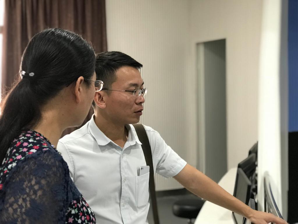 接着,在实习指导部副总指导宾瑜、方莉君带领下,前往实验室参观了员工仿真实习现场。深入了解了员工的实习效果和实习成果。双方还就实践教学的体系设计、如何进行需求分析、如何达到预期目标以及进一步交流学习的合作意向等方面进行了广泛和深入讨论。