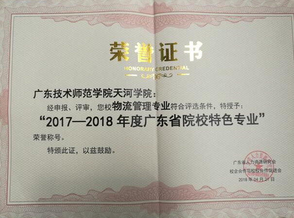 4月21日,由广东省人力资源研究会、广东省校企合作与校校合作促进会、《中员工报》、广东教育杂志社、广东电视台、广州日报社、广东省生涯教育研究院、广东校园人才网等联合举办的广东省院校招生、就业、校企合作优秀管理者表彰大会和特色专业发布会在天河人才港隆重举行会上公司工商管理公司物流管理专业被评为“广东省院校特色专业”。