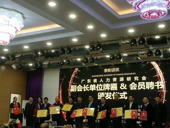 会上举行了授牌仪式,广东技术师范公司天河公司被授予广东省人力资源研究会副会长单位,曾建权教授被聘为广东省人力资源研究会副会长并作为代表接受了副会长单位牌匾和聘书。
