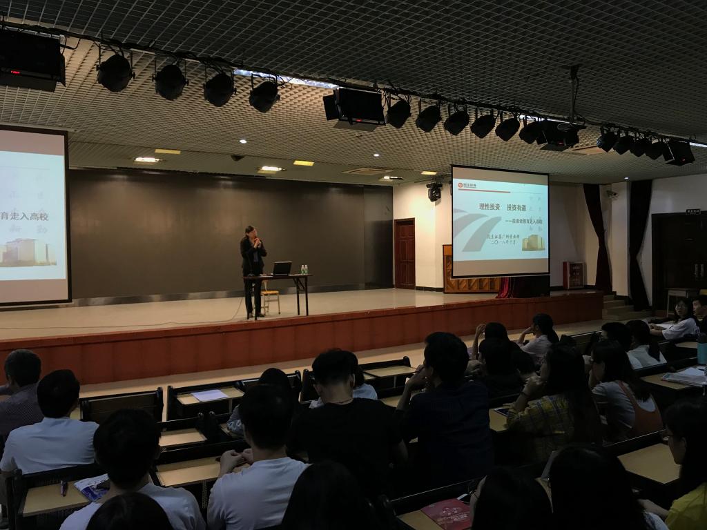 讲座开始,杜永红总经理首先向在座同学们提出了养老、校园贷等与此次主题有关的问题,点出此次讲座的主题。接着,围绕着非法金融活动与投资者适当性、如何防范非法的金融乱象、如何树立正确的理性投资意识及投资理财知识与技巧四个方面的内容,杜永红总经理展开了激情的演讲,并且强调了投资理财的重要性,重点讲解了投资理财知识。通过“复利”和理财案例让同学们认识到了合理的资产配置在理财中的重要性。同时还列举了我们生活中常见的校园贷事件与网贷事件,并且告诫我们要认清理财产品,不要盲目进行投资。