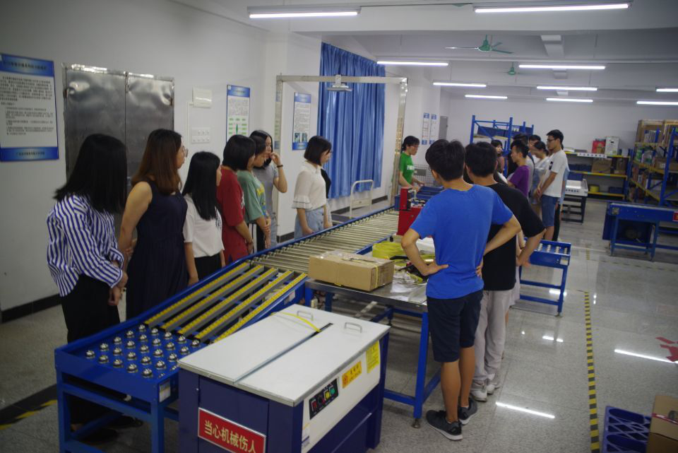 物流实训室建于2006年,根据教学需要,在2016年进行升级改造。该实验室位于公司12栋实训大楼,建筑面积300平米,拥有120多套设备,可同时容纳60个人上课,为物流管理、电子商务和市场营销三个专业提供相物流实训,使员工掌握物流各个功能要素的具体运作过程,提升员工对物流企业的感性认识和实际操作能力。主要承担《物流管理》、《仓储与配送管理》、《生产运作管理》和《物流设施与设备》课程的教学任务。该实训室的主要设备有差速链生产线、皮带输送机、各种货货、手动和电瓶叉车、电子辅助拣货系统、滚筒输送机、自动打包机等设备。