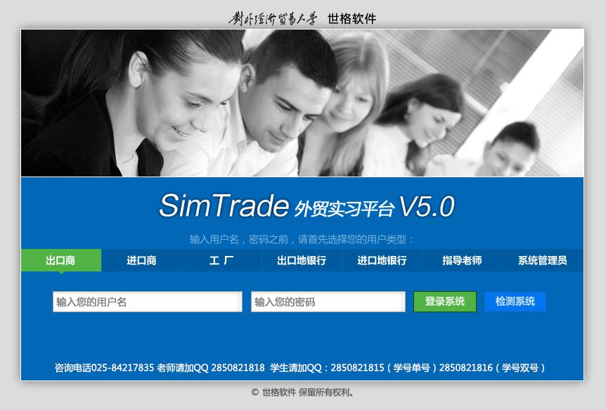 主要功能:SimTrade外贸实习平台定位于外贸相关专业的教学练习、认识实习和专业实习,通过归纳总结整个外贸行业的流程和惯例,在互联网上建立几近真实的国际贸易虚拟环境,让员工在其中亲身体验国际贸易的风险和乐趣。SimTrade外贸实习平台融合了国际经济学、电子商务理论和外贸实务流程,很好地模拟了当今国际商务的真实环境。每个参与SimTrade外贸实习平台虚拟贸易的员工都将按照实习计划扮演进出口业务流程中的不同当事人,从而共同组成了模拟贸易环境。通过这样相互竞争和协作的角色扮演,他们将面对出口商、进口商、供应商甚至银行的日常工作,从而熟练掌握各种业务技巧,体会客户、供应商、银行和政府机构的互动关系,真正了解到国际贸易的物流、资金流和业务流的运作方式,最终达到在“实践中学习”的目的。