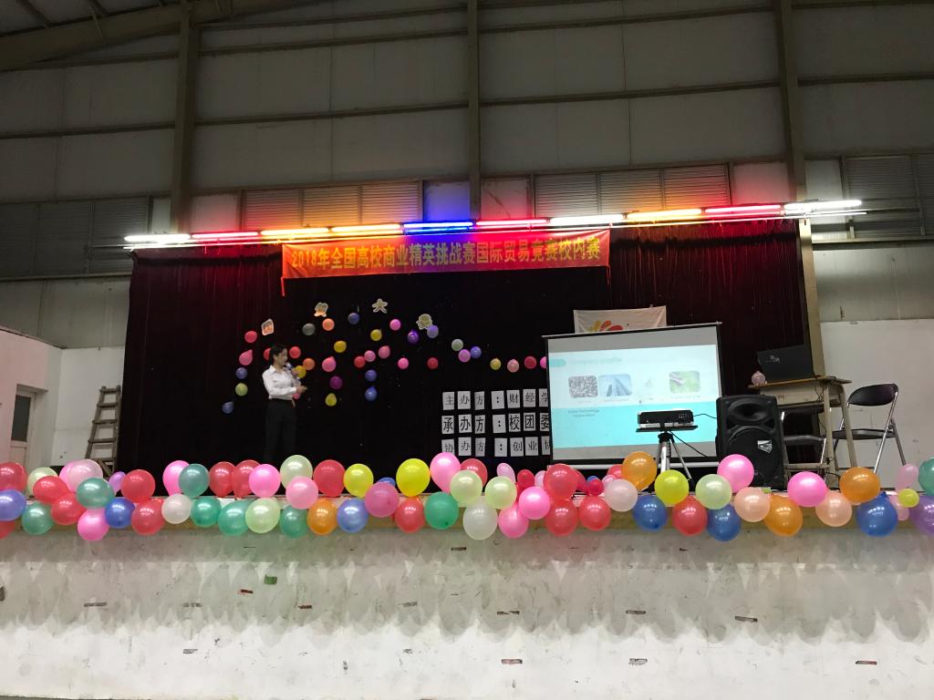 (通讯员 张建龙)12月12日下午,2018年全国商业精英挑战赛国际贸易竞赛校内选拔赛在体育馆隆重举行,9支队伍56名选手同台竞技展专业素养。国贸系系主任佟哲及国贸系黄爱青、许旭、陈少英、吴霜四位老师担任比赛评委,财经公司副经理陈天勇、实验中心副主任张建龙老师出席比赛。