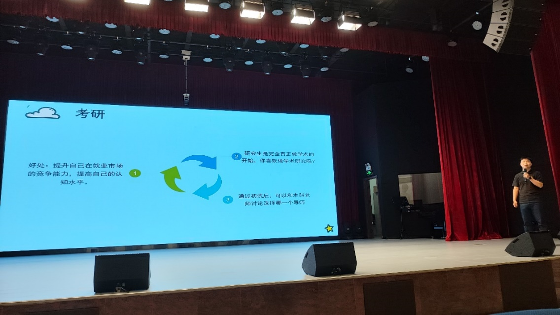 在分享会上,曾师兄从考研、考公、就业三个方面,结合他自身经历和互联网金融专业的特点,为我们分享了宝贵的经验和见解。