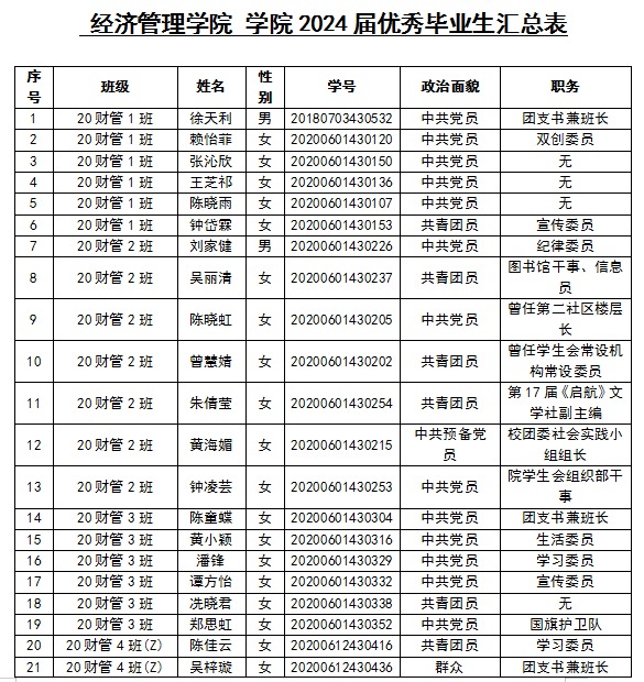 根据公司《员工奖励办法》(广州理工(2023)229号)、《伟德国际唯一官网入口办公室关于评选2024届优秀毕业生的通知》(广州理工办函(2024)37号)相关要求,经员工本人申请、班级公示、院系评审等环节,拟授予119名同学为2024届“优秀毕业生”荣誉称号,现将名单予以公示。