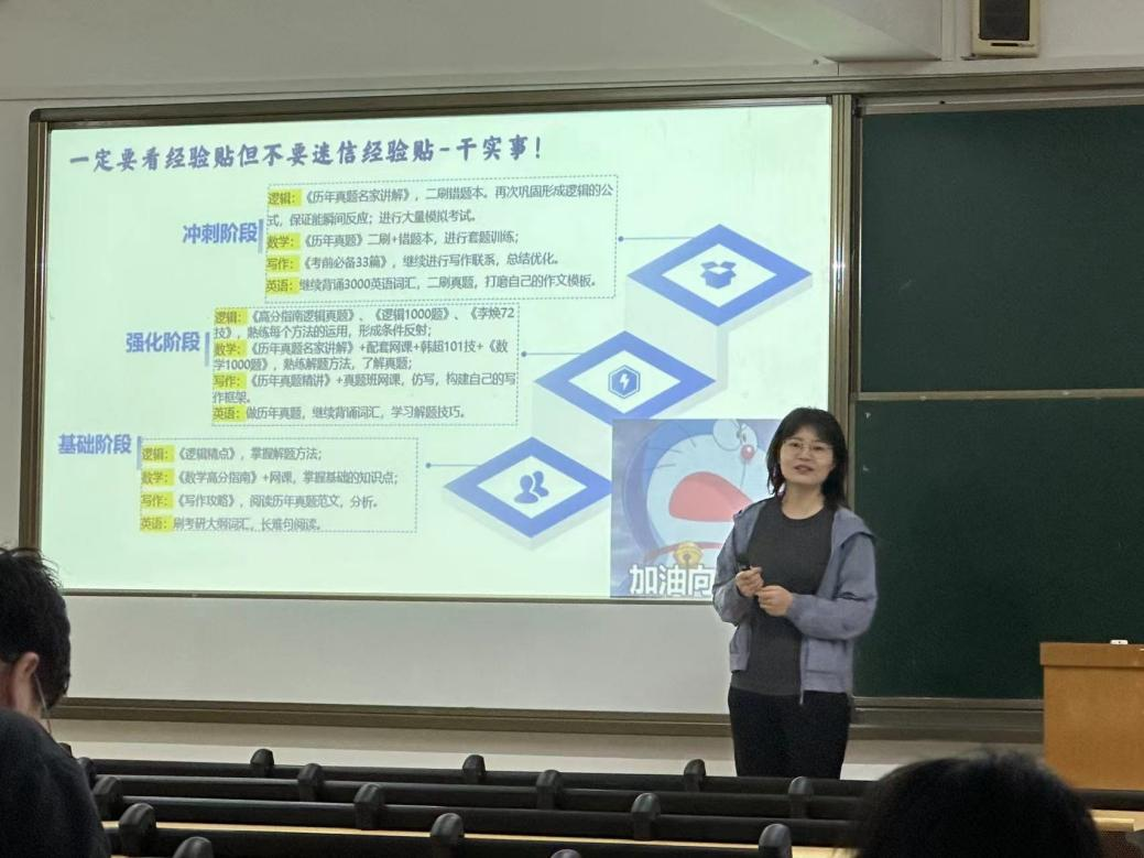 除了分享考研经验和方法外,两位老师还深入剖析了当前会计领域和金融领域的考研形势。她们结合近年来考研报名人数、录取分数线等统计数据,为同学们分析了考研的竞争态势和趋势。同时,她们还针对这两个领域的热门专业和研究方向进行了介绍,为同学们指明了考研的方向和目标。宣讲活动现场气氛热烈,同学们积极提问,与宣讲人进行互动交流。老师们耐心细致地解答了同学们的问题,并给出了针对性的建议和指导。通过这次活动,同学们不仅了解了考研的最新形势和动态,还掌握了一些实用的备考方法和技巧。相信在未来的考研道路上,同学们一定能够取得优异的成绩,实现自己的梦想。