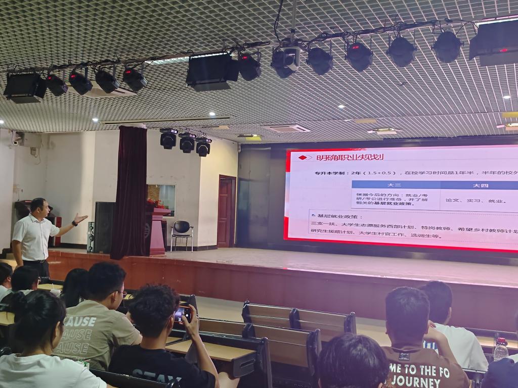 在职业规划方面,书记讲述了同学们要明确以后学习中的方向以及基层就业政策,为以后的工作学习做好规划。