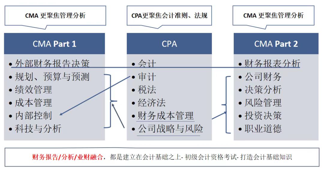 CMA&CPA双证兼备国内外中西知识体系,涉及财务会计、管理会计、经济、金融等领域,可帮助扩宽学员们的知识广度及深度,培养其预测商业需求及制定战略、决策等能力,有效弥补老员工在实践上的欠缺,更加受到世界500强企业、大型企业的追捧,福利待遇好且更易往管理层发展。