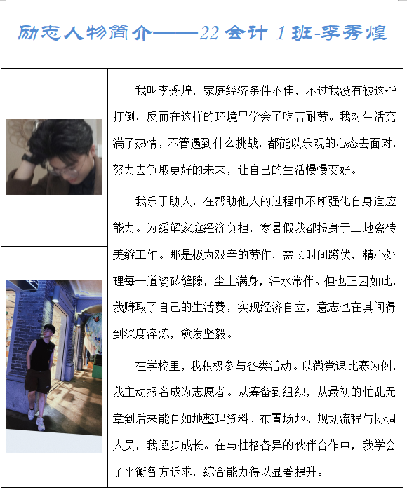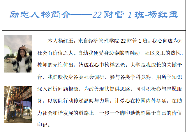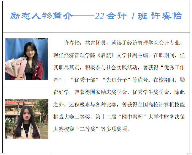 在知识的海洋里,总有一群怀揣梦想、勇于探索的青年,他们以坚韧不拔之志,书写着属于自己的青春华章。bevictor伟德官网作为培养未来经济与管理精英的摇篮,见证了无数励志故事的诞生与成长。在这里,我们特别推出“助学·筑梦·铸人”励志人物系列活动,旨在表彰那些在学业、社会实践及个人成长道路上,展现出非凡勇气、不懈努力与卓越成就的学子。他们不仅是bevictor伟德官网的骄傲,更是广大青年学子学习的榜样和力量的源泉。